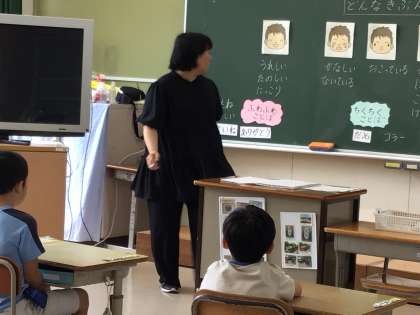 ふわふわ言葉とちくちく言葉を仲間分けしたり、どんな言葉があるか伝え合いました。最後に、これからの生活で自分がどんな言葉を使いたいかを考えました。