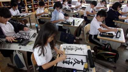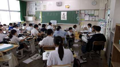 部首「しんにょう」のある字について、バランスを意識しながら書きました。1画目から、その位置や向き・長さなどを、よく考えて書いていく必要があります。
