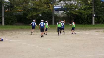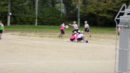 先週の授業の様子です。みんな、アルティメットにだんだん慣れてきています。