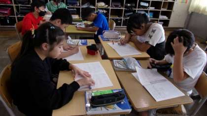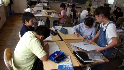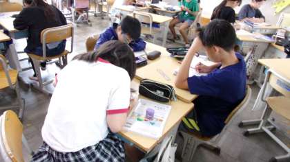 分母が異なる分数の大小を比較します。分母の公倍数を探し、分母を揃えていくことで比べられることを学習していました。
