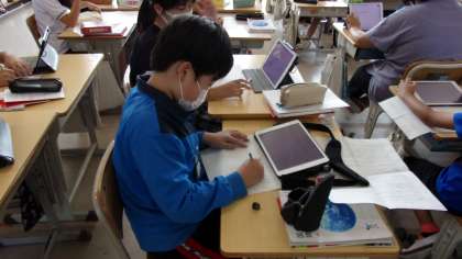 「海のいのち」に出てくる語句について、わからないものを国語辞典や学習用タブレットで調べていました。