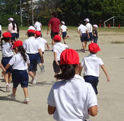 長放課に避難訓練を行いました。子どもたちはどの時間に行われるかを知らされていません。放送を聞いて身を守る体勢をとり、周りにいる先生の指示を聞いたり、自分たちで判断したりして校庭に避難しました。教室で振り返りも行いました。災害について、ご家庭でも話題にしてみてください。