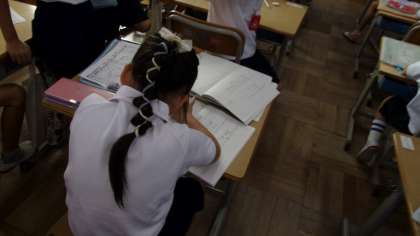 朝の会前の、支度の様子、連絡帳を書いているところです。1年生も、入学後半年が経ち、すっかり、上手にできるようになってきています。