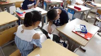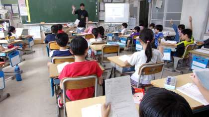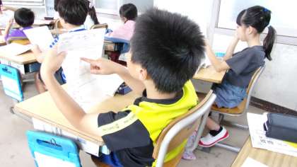 この単元では、司会者を中心にテーマに沿った話し合いをします。まずは、動画を見たり、記録された文を読んだりして、イメージを膨らませていきます。