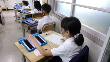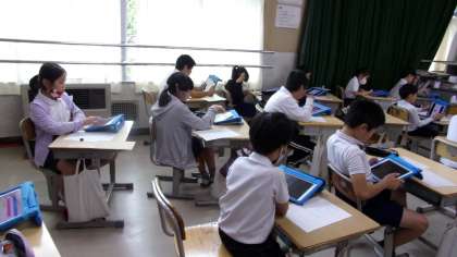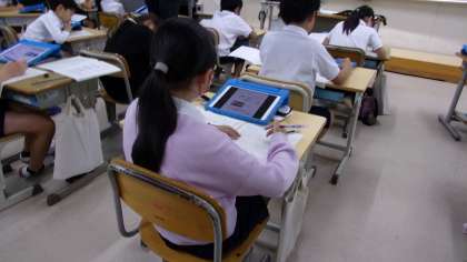 学習用タブレットを使って、豊田市の良い所をまとめていきます。豊田市の学習の総仕上げになります。