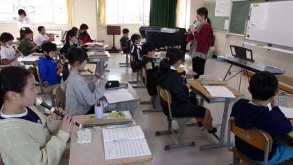 リコーダーの練習です。5年生ですから、結構難しい曲ですが、がんばっています。