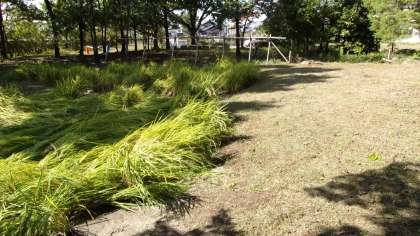昨日、稲刈りが行われました。この稲刈りに向けて、地元の「みどりの会」の皆様が、この週末、田んぼ周辺をきれいに整備してくださいました。ありがとうございました。上の写真がbefore、下の写真がafterです。「みどりの会」の皆様、ありがとうございました。