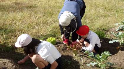 先週水曜日の授業の様子です。みんな、自分の野菜を大切に育てています。作物を育てることで、身についていく力って、とても大切なものだと思います。