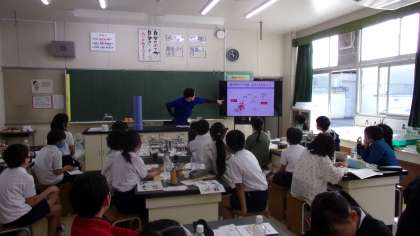 スポーツフェスティバル2日後の10月27日(金)、下水道出前講座が行われました。実は、6月2日に予定されていたものなのですが、あの大雨による休校を受けて、この日に延期されました。