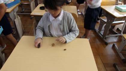 1の2生活「秋となかよし」 〜どんぐりゴマ作り〜