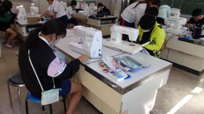 これは、3組のトートバッグ作りの様子です。18日(水)と31日(火)の授業です。