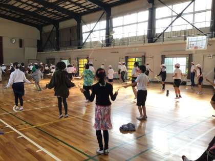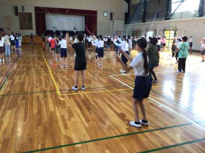 来週から全校で取り組むJumpJumpタイムに向けて、運動委員会主催の練習会が始まりました。長放課、昼放課に対象の学年で練習したい子が集まり、運動委員の子たちと一緒に練習します。今日の長放課は5年生が対象で、曲に合わせて練習しました。