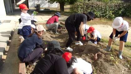 2日(金)に行われました。とても大きなサツマイモがいっぱい穫れました。