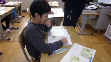 物語を読んで、時・場所・登場人物に着目して、場面分けをしていました。