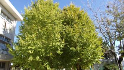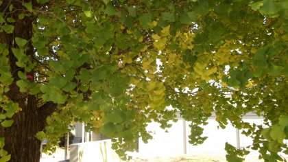イチョウの葉が、どんどん黄色くなってきています。遠目には、ちょっとわかりにくいですが、近くで見ると、黄色い葉が増えていていることを実感できます。