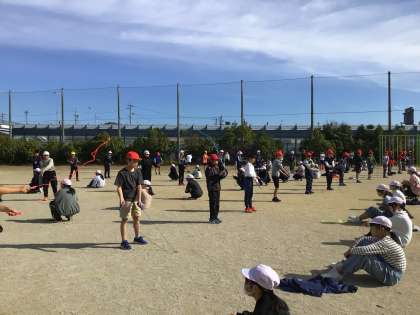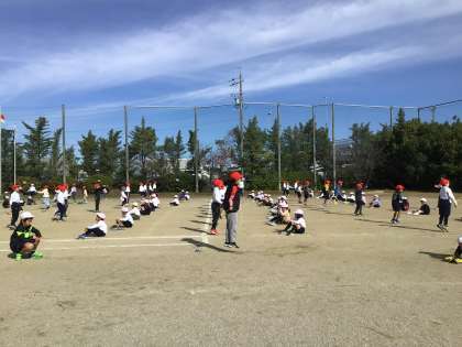 青空の下、今日も縄跳びを頑張りました。みんなそれぞれ自分の目標に挑戦しています。