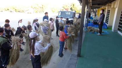 なかなか掲載するタイミングがなく、遅くなってしましましたが、脱穀〜精米の様子を掲載します。14日(火)に行いました。