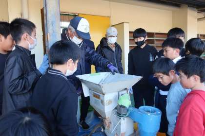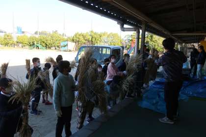 5年生全員が、脱穀を体験しました。地域講師の皆様、ありがとうございました。