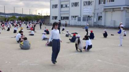 曲の最後まで跳べた子には、自然にみんなから拍手が送られていました。