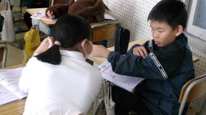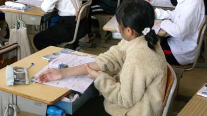 腕の筋肉のつくりはどのようになっていて、どのように動くのかを考えました。まずは、自分の腕を使いながら考え、次に模型を使って観察しました。