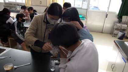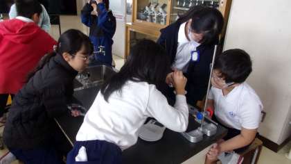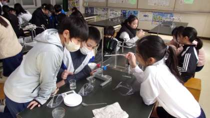 水溶液に溶けている物質を取り出す実験をしていました。