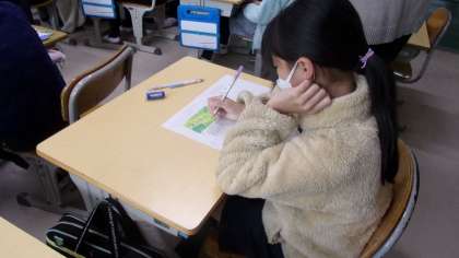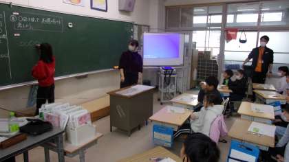 この授業は、研究授業として行いました。多くの先生が参観してるのはそのためです。本校では、各学年で1回ずつ、このように研究授業を行い、授業力を高められるようにしています。