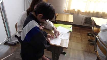 顔を描いて、福笑いを作りました。