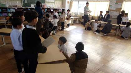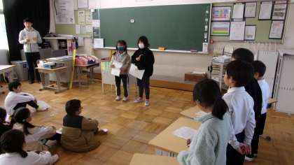 2年生は、1年生を招いて「おもちゃまつり」を開きます。そのためのリハーサルをしていました。本番さながらです。これだけ一生懸命準備すれば、きっと1年生にも楽しんでもらえそうですね。