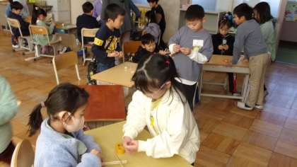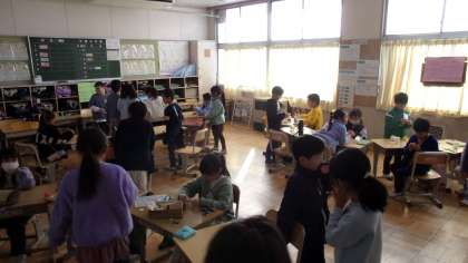 2年生が「おもちゃまつり」を開き、お客さんとして1年生を招きました。一生懸命、わかりやすく説明したり、1年生に寄り添って親切にしたりする2年生の頼もしい姿が随所に見られました。