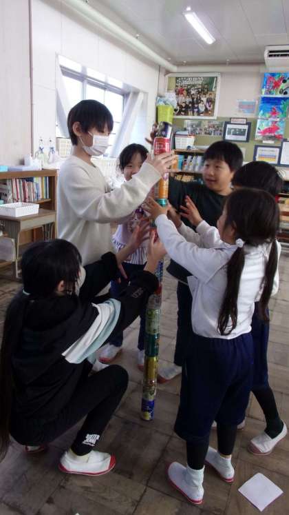 上から、ペットボトルキャップ積み、命令ジャンプゲーム、空き缶積みです。