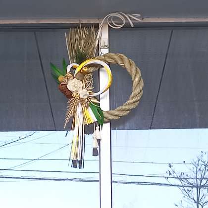 下の写真は、玄関のしめ飾りです。校内支援員さんが作りました。今年の干支である龍(辰)をイメージして作ったとのことです。