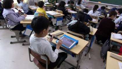 リコーダーの演奏をしていました。冬休みをはさみましたが、しっかり、指使いを覚えている子が多くいました。
