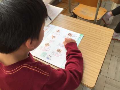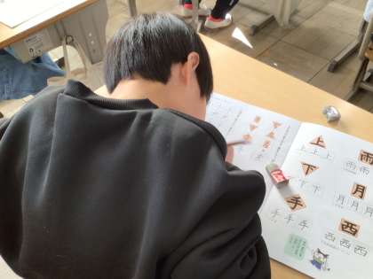 漢字の外形を確かめながら、書きました。形を意識すると、整った字になります。