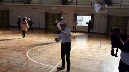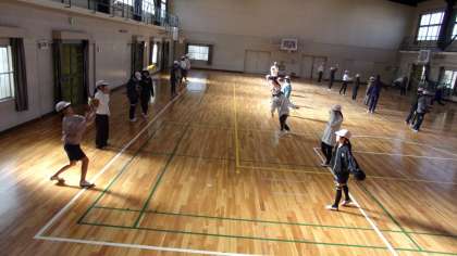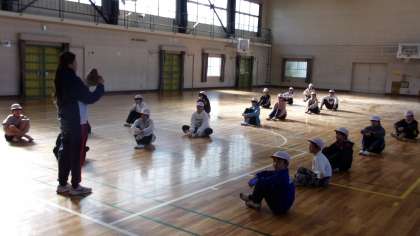 6年1組の様子です。教科担任の先生から、大谷選手の思いについて話があり、その後、キャッチボールを始めました。これは、6年生3クラスとも、同様の流れです。