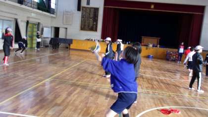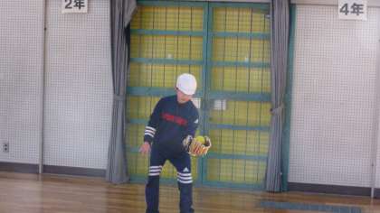 6年2組です。6年生の中にも、グローブをはめた経験がほとんどない子もいます。それでも、さすが6年生。まずまず、使いこなしていきました。