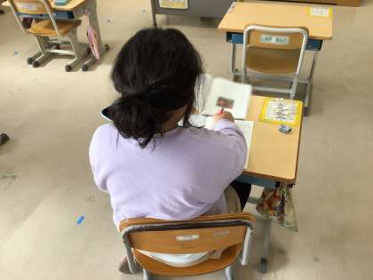 高学年は、説明文の学習をしていました。キーワードを使って、段落ごとに要点をまとめる学習を行いました。