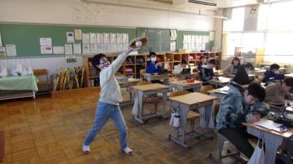 5年4組の様子です。やはり、柔らかく軽いボールを使って、キャッチボールをしていました。もちろん、野球経験者は上手なのですが、野球未経験者でも、グローブを使っているうちにだんだん上手にんってくる子が多くいました。子どもたちの可能性ってすごい…と改めて感じました。
