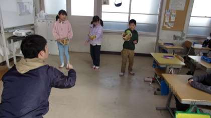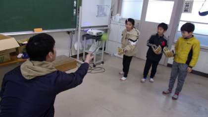 3年3組です。やはり、担任の先生が投げたボールを、グローブを使ってキャッチしていました。