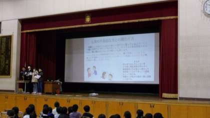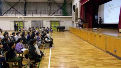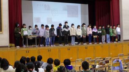 本日、3年生の学習発表会が行われました。子どもたちが、総合的な学習「かがやきプロジェクト〜わたしたちができること〜」で学習してきた成果を、「目の不自由な方」「耳の不自由な方」「足の不自由な方」「お年寄り」「外国の方」の5つのグループに分かれて発表しました。