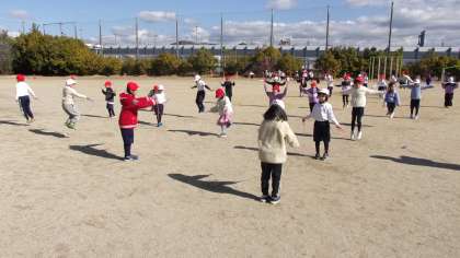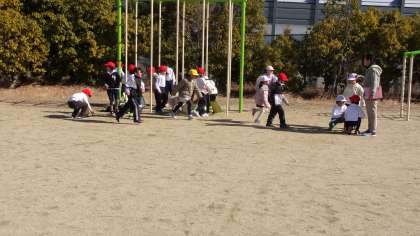雪が降る前、23日(火)の授業の様子です。なわとびをやるクラスと、鉄棒などの遊具を使うクラスとに分かれ、途中で交代していました。