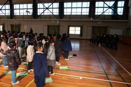終わりの会の最後には、みんなで、講師の方々にお礼を言いました。講師の皆様、お忙しい中、また、大変寒い中、子どもたちのためにお越しいただき、本当にありがとうございました。