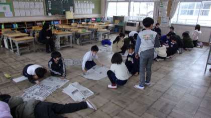 上から、新聞単語探しゲーム・伝言ゲーム・猛獣狩りの様子です。