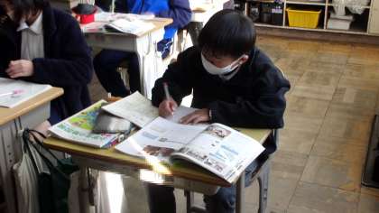 自分たちの周りにある、様々なメディアの特徴を整理していました。そのうえで、ニュース番組ができるまでの動画を視聴し、どのようにできあがっていくのかを学んでいました。
