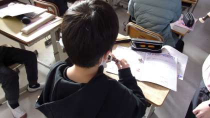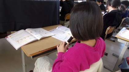 日本の音階の一つを、リコーダーを鳴らしながら音を確認しました。その後、その音階の音を使って、旋律を作っていました。