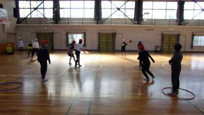 まだ、単元が始まったばかりとのことです。パスを使った、ゲームをしていました。