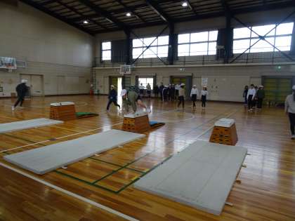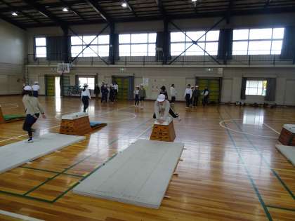 美しい跳び方を練習してきた跳び箱。今日はテストです。自分が挑戦したい高さの跳び箱で最後の練習をしてから、テストに臨んでいました。