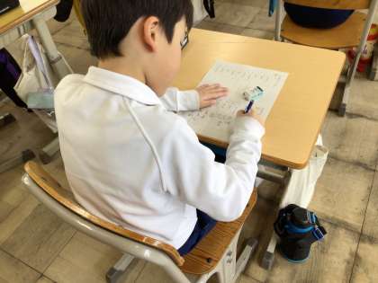 漢字小テストに取り組みました。はねるところや送り仮名にも気を付けて書きました。