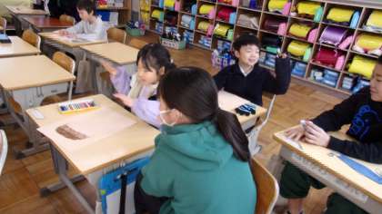 昨日、1年生の教室に6年生の姿がありました。1年生が6年生の似顔絵を描いていました。コロナ禍前には、ちょくちょくあった光景なのだそうです。一生懸命描く1年生。一生懸命モデルになる6年生。でも、ついつい、甘えたくなってくることもある1年生。ついつい、それに応えて、手ほどきまでしてしまう6年生。とても、いい光景でした。