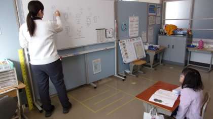 「夏」「星」「見」などの漢字を美しく書くための留意点を確認していました。