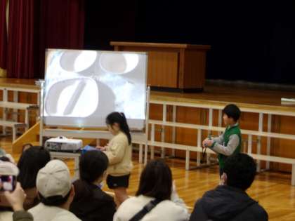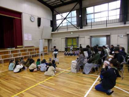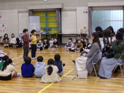 1年生は、この1年でできるようになったことを発表しました。これらの写真は、1組の様子です。